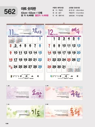 3) 타사 달력은 교회에 배송된 카다로그에서 선택. (일부 카다로그 불가)